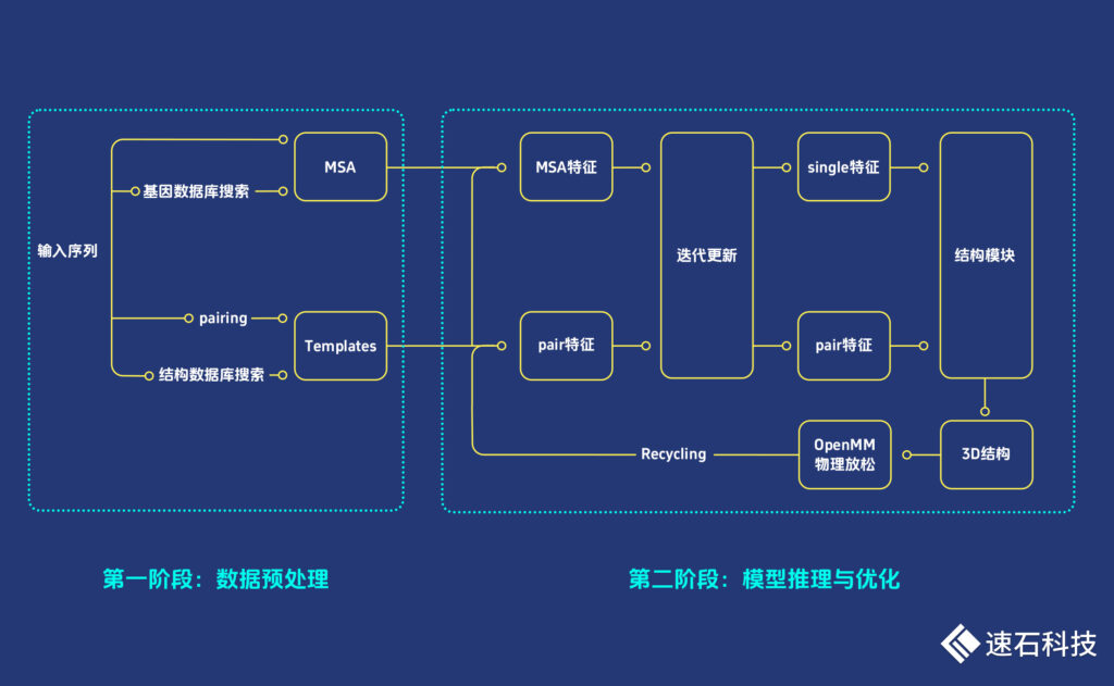 整個蛋白質結構預測計算過程大致可以分為兩個階段: