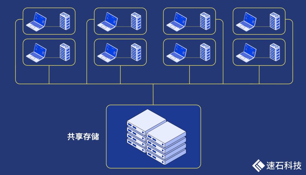 而其他對I/O讀寫速度要求不高的數(shù)據(jù)庫可以放在網(wǎng)絡共享存儲上,方便所有機器共享讀取和寫入,減少數(shù)據(jù)同步問題。