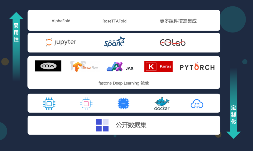 在AIDD方面,我們支持AlphaFold、RoseTTAFold等常用AI框架所需資料和快速環(huán)境的搭建,并支持更多組件按需集成。