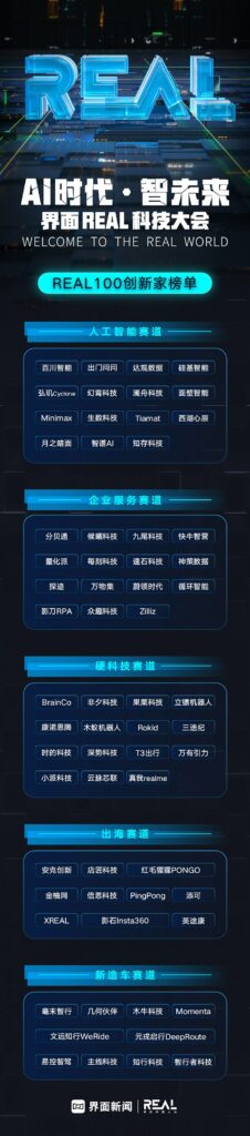 本次“REAL 100創(chuàng)新家”榜單覆蓋人工智能、企業(yè)服務(wù)、硬科技、出海、新造車五大熱門賽道,由界面新聞聯(lián)合70余家頂級投資機(jī)構(gòu),聚焦科技與創(chuàng)投領(lǐng)域的新機(jī)遇、新趨勢和新模式,耗時超過六個月的時間,從數(shù)百家入圍名單中,遴選出最能代表前沿產(chǎn)業(yè)趨勢的創(chuàng)新企業(yè),展示行業(yè)中多元化的創(chuàng)新力量。